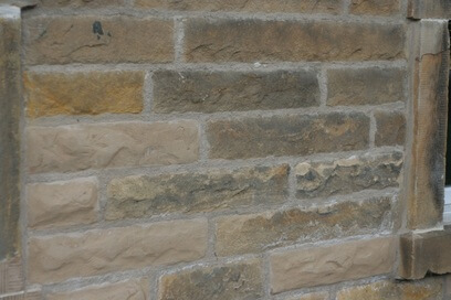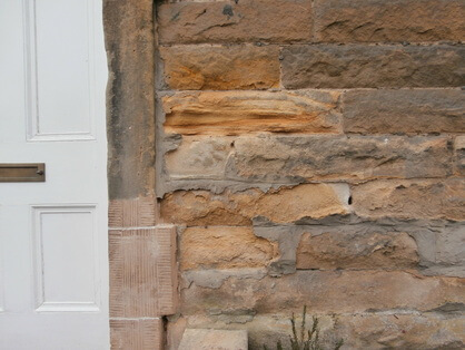 The use of the wrong type of mortar can contribute significantly to the rapidity of stone damage. Inflexible, impermeable cement-based mortars, used to bond sandstone blocks together, is a particular problem. The sandstone is far softer than the surrounding mortar and therefore erodes quicker. Water can get in between the stone and surrounding mortar; it takes